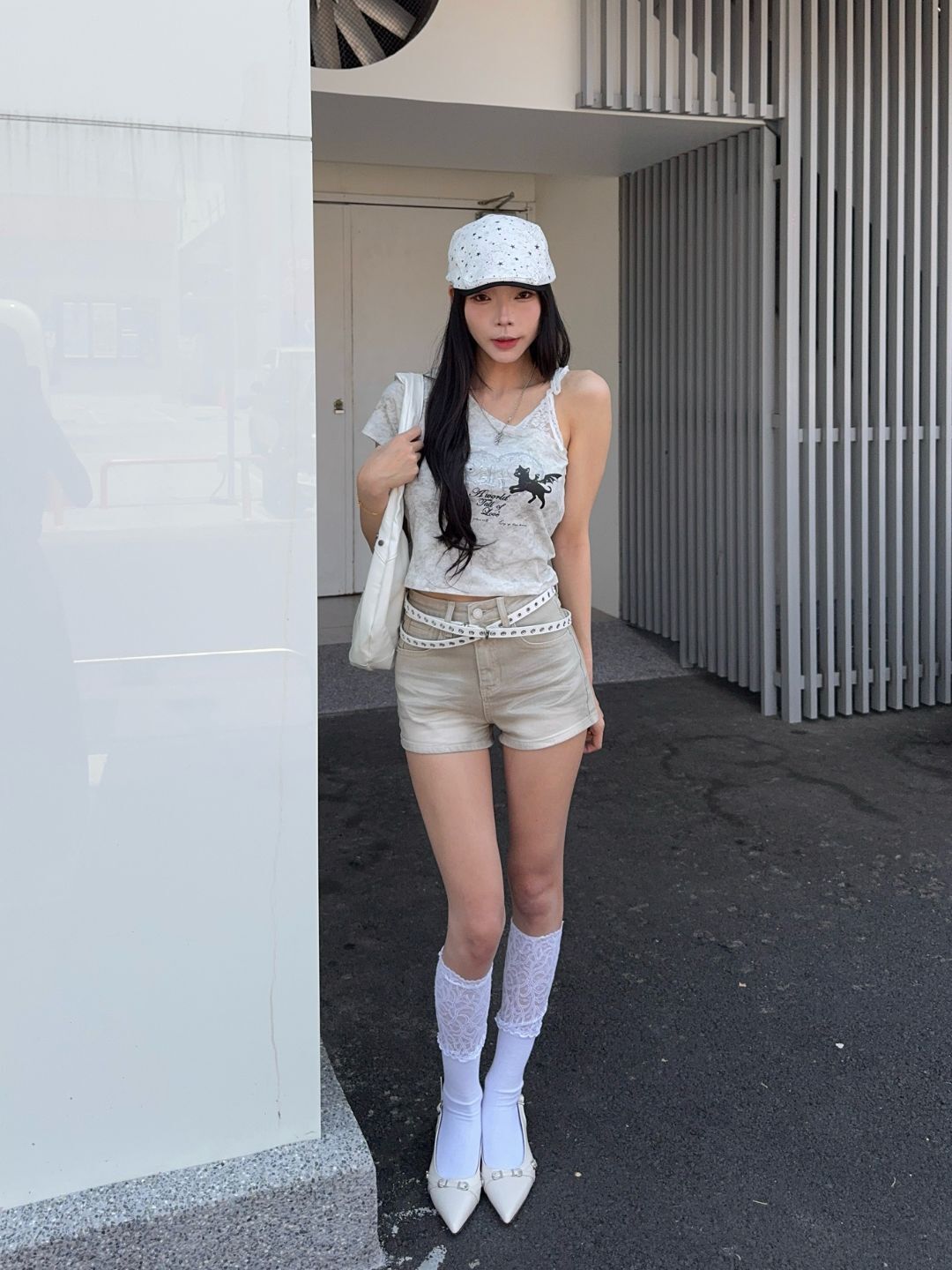 復古軌跡水洗皮帶短褲