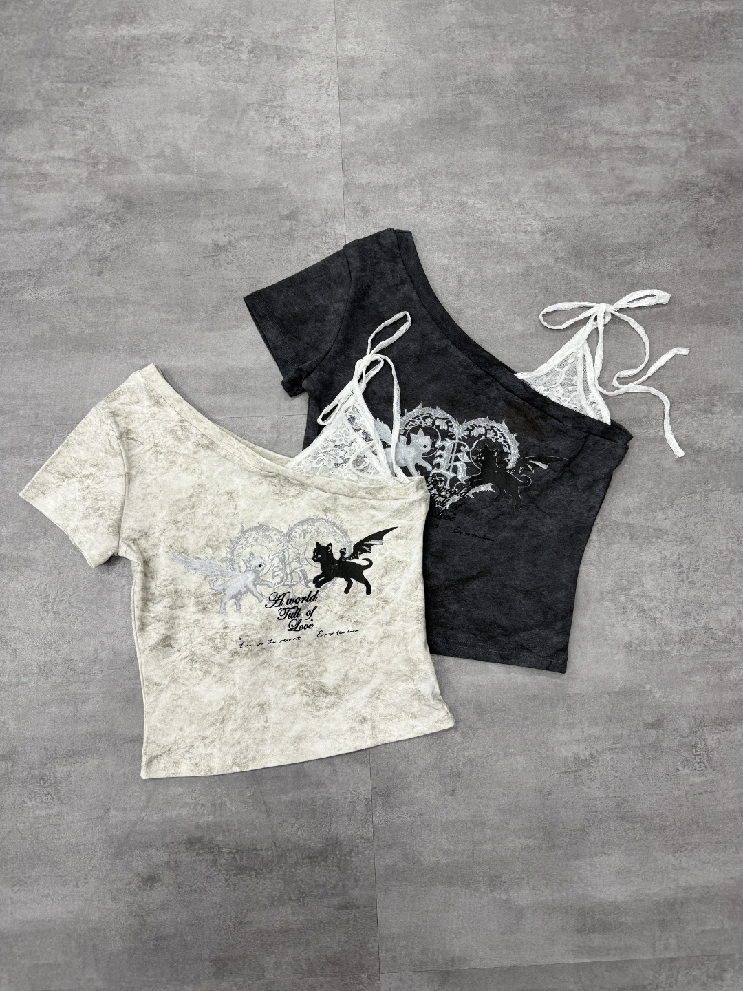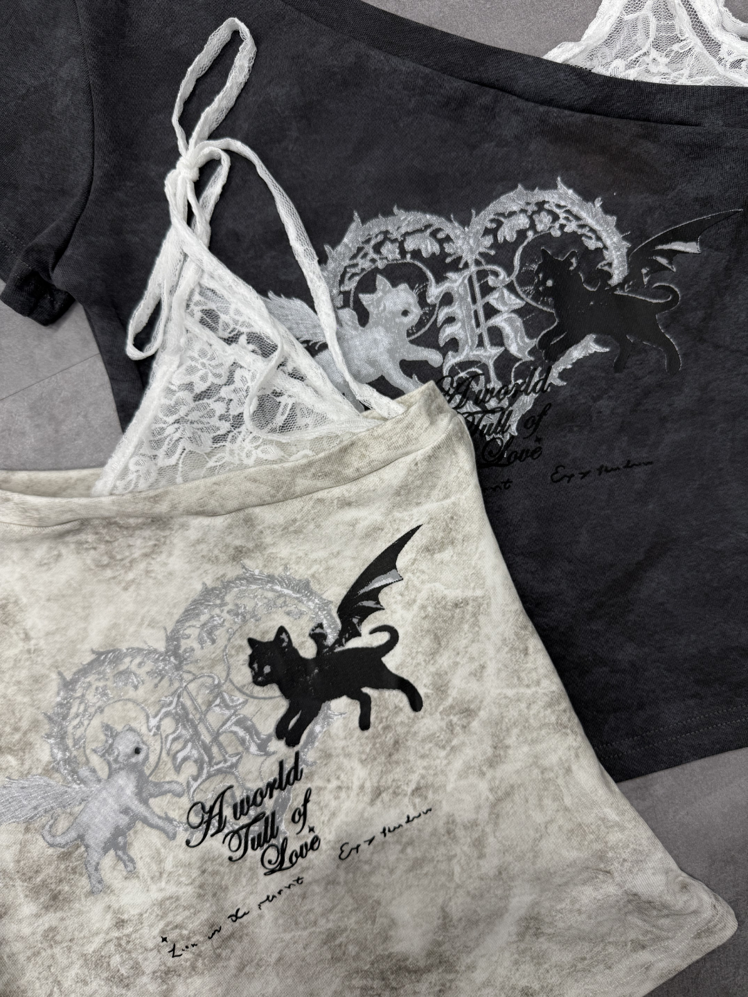 惡魔天使貓暈染蕾絲綁帶上衣