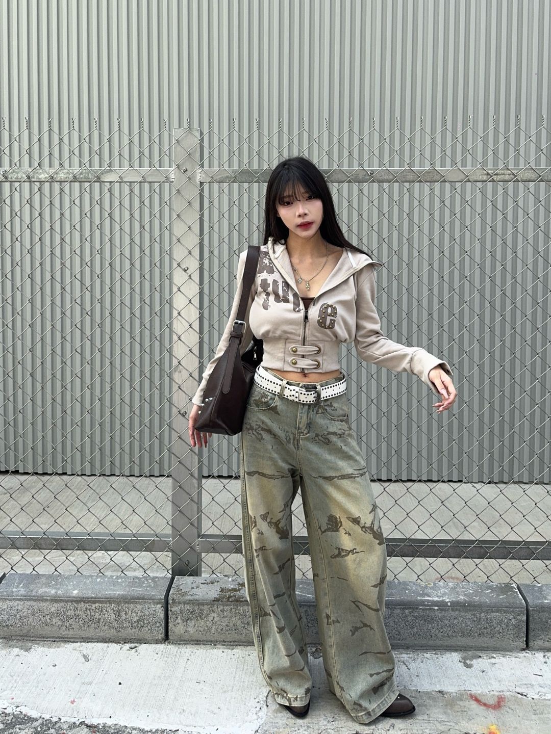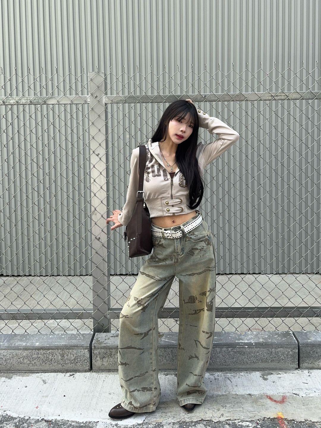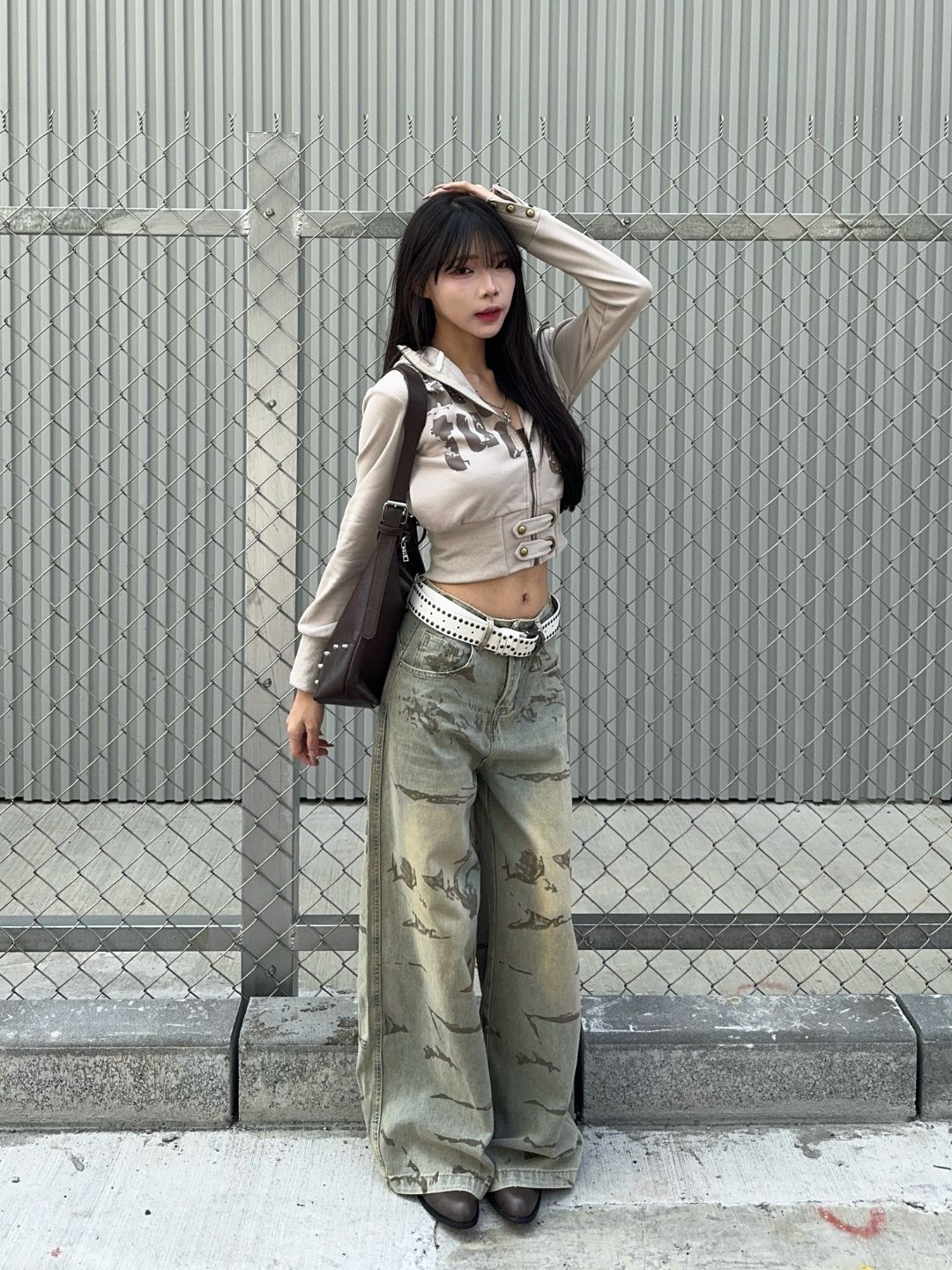 雲煙復古刷色單寧寬褲